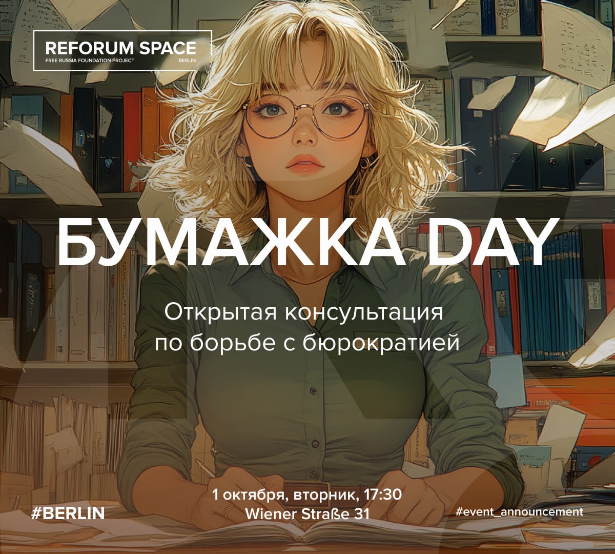 Адвокат Мирослава Аннюк и координаторка Reforum Space Юлия Абдуллаева помогут разобраться с вопросами, возникающими при контакте с различными государственными структурами и заполнить бумаги. Также бытует мнение, что обсуждение на открытых консультациях типичных трудностей, с которыми приходится бороться после эмиграции, успокаивает в тревожные моменты столкновения с немецкой действительностью.