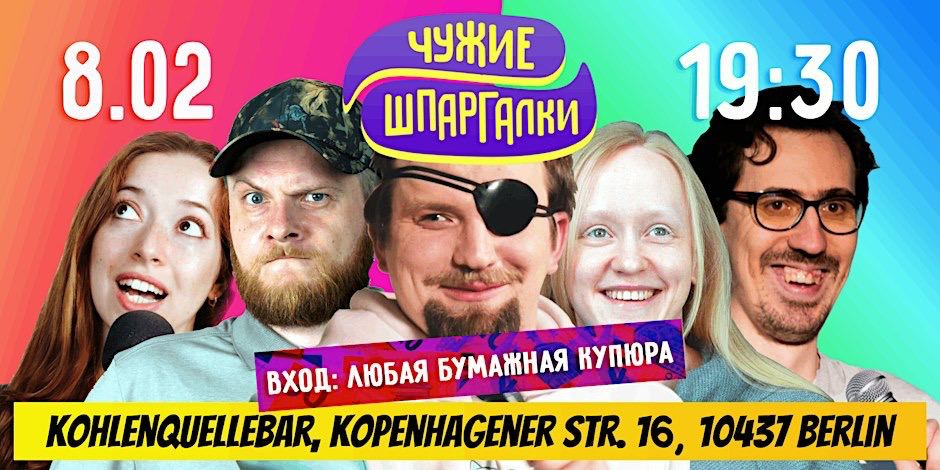 Чужие Шпаргалки — шоу, где комики шутят на темы, которые никогда в жизни до этого не видели. Вход — любая бумажная купюра.