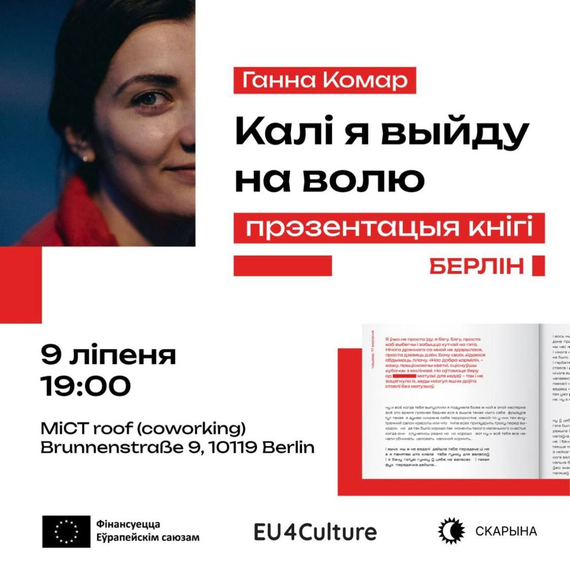 Беларусская поэтка и писательница Ганна Комар представит свою книгу документальной прозы «Когда я выйду на волю». В этой книге описаны девять дней, которые Ганна провела в минской тюрьме в 2020 году. История раскрывается через дневниковые записи авторки и свидетельства тех, кто в то же время пережил полицейское насилие, арест и заключение, а также рассказы их близких, которые поддерживали заключенных и ждали их освобождения.
