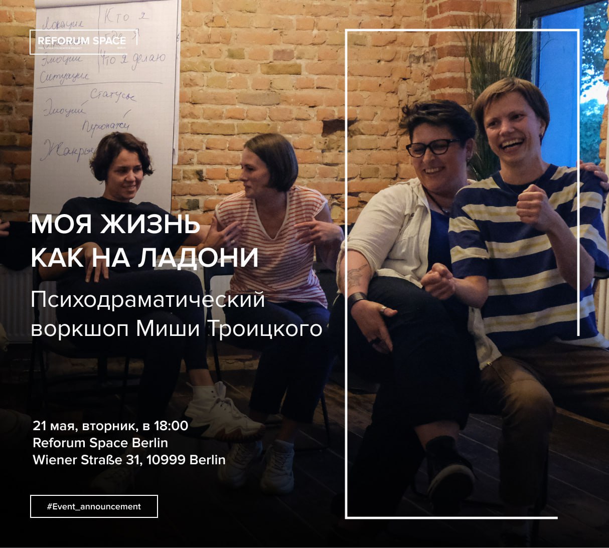 Ведущий воркшопа — Миша Троицкий, психодраматист, преподаватель, тренер, актёр плейбек-театра.