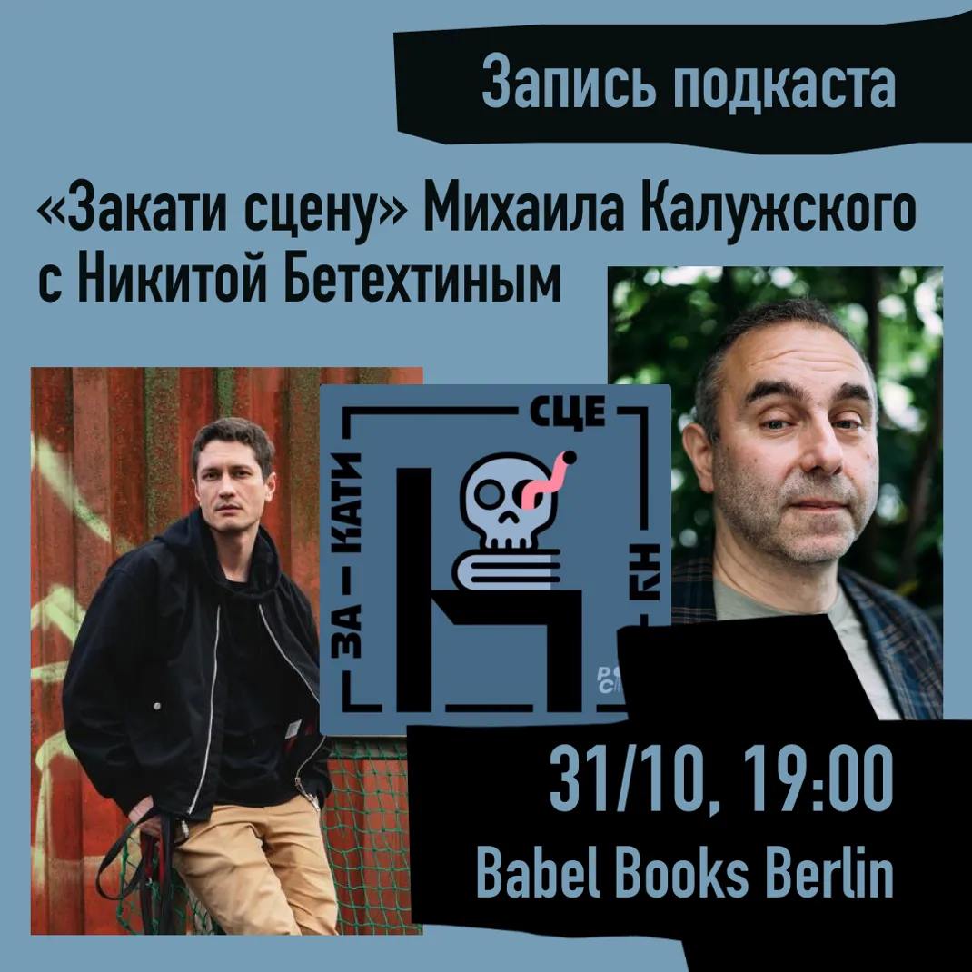 Михаил Калужский — автор и ведущий подкаста о документальном театре «Закати сцену» — поговорит с Никитой Бетехтиным — режиссёром, чьи спектакли шли по всей России. В 2022 он открыто выступил против вторжения в Украину и стал составителем списка «зиганувших театров». Никита со своим псом Семёном переехал в Берлин, выучил немецкий, сотрудничает с Deutsches Theater, ставит спектакли в Германии и других европейских странах