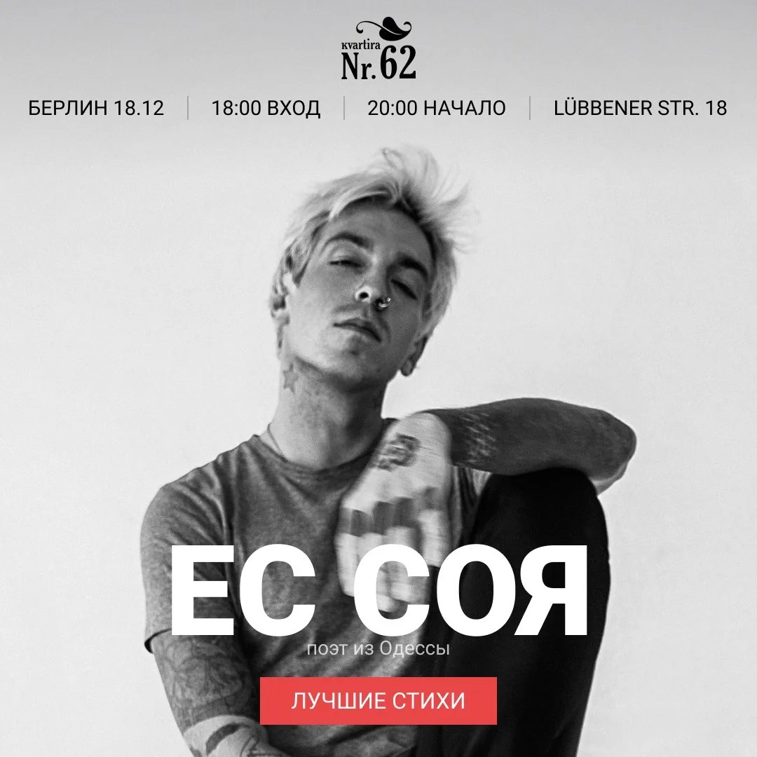 Евгений Соя — поэт и путешественник, один из первых (на сцене с 2008го года) и один из самых ярких представителей новой поэтической волны. Он мягко обаятелен и опасен, впрочем, как и все одесситы, и все его стихи — о любви и он этим гордится.