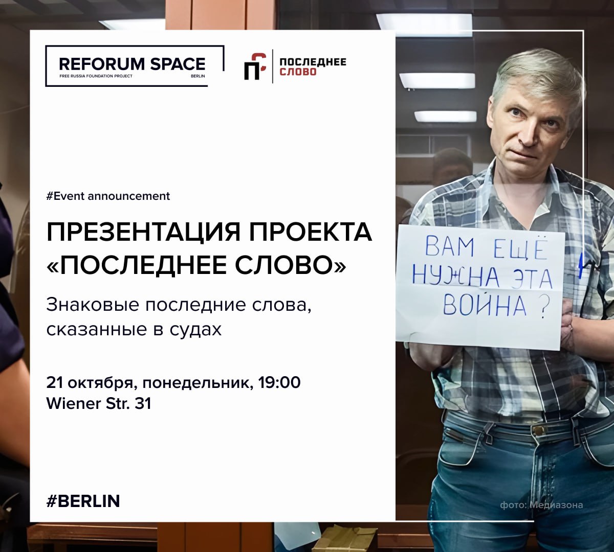 Проект «Последнее слово» собирает знаковые речи, сказанные в судах на постсоветском пространстве и в самом СССР, но прежде всего – последние слова современных российских политзаключённых.