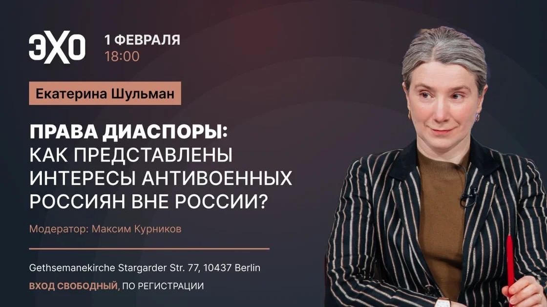 1 февраля в Берлине состоится встреча с Екатериной Шульман на тему «Права диаспоры: как представлены интересы антивоенных россиян вне России?».