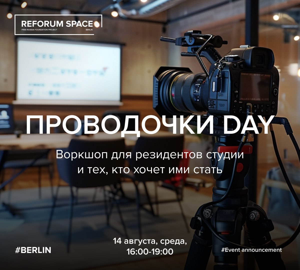 Обсудим эти и другие вопросы, связанные с записью звука при съемке видео, и обязательно попробуем всё на практике в среду, 14 августа, в студии Reforum Space Berlin!