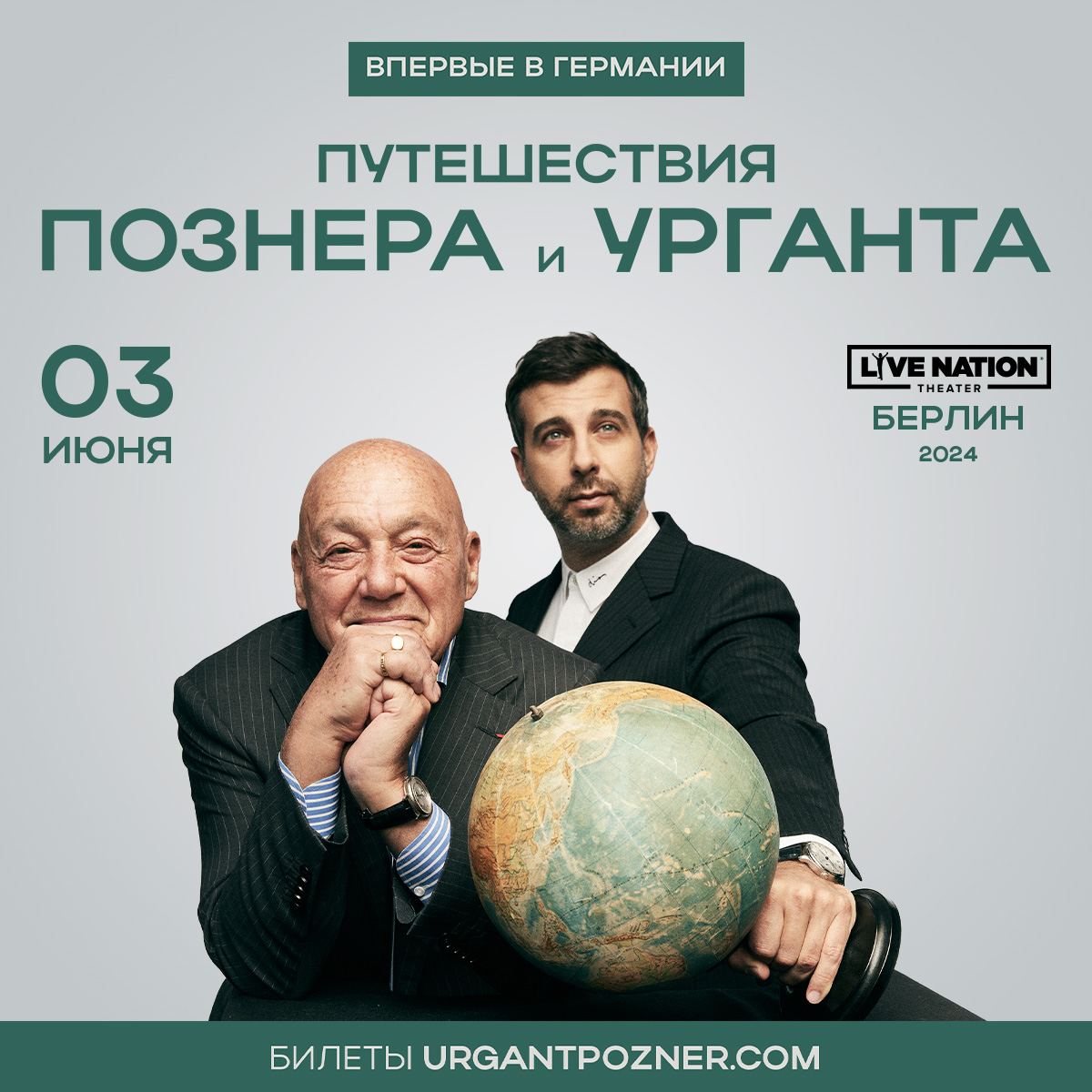 Владимир Познер и Иван Ургант представляют шоу о путешествиях и жизни. Публику ждут интеллектуальные беседы и юмористические истории от двух ведущих разных поколений с уникальными взглядами. Проект объединяет жанры от стендапа до познавательных бесед. У зрителей будет возможность задать вопросы Познеру и Урганту.