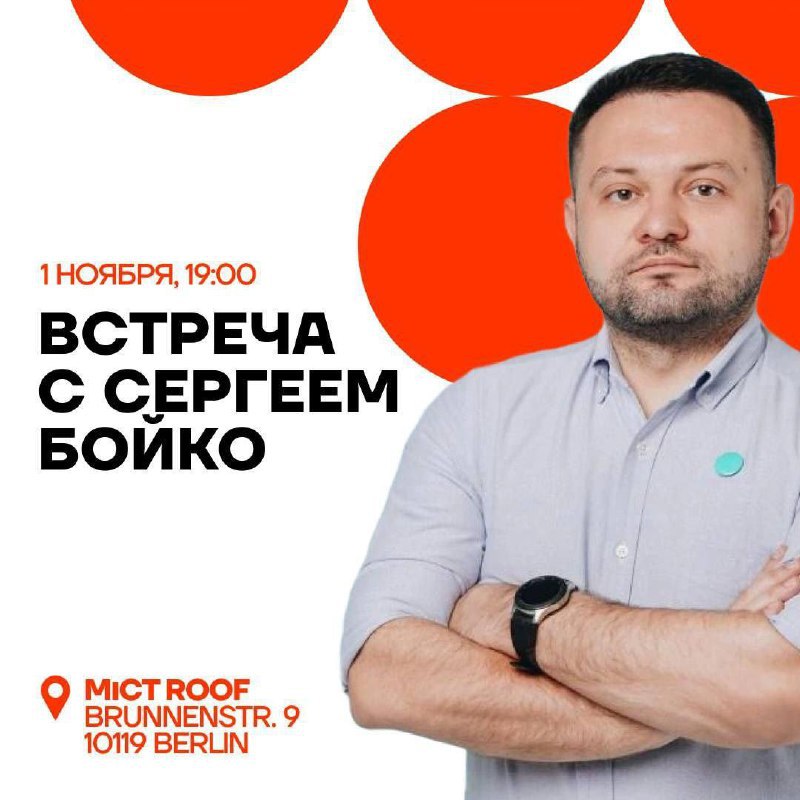 Совместно с командой Nawalny Team Deutschland пройдет встреча с Сергеем Бойко — российским политиком и общественным деятелем. Сергей является ведущим рейтинговой программы «Бойко о главном» на канале «Популярная политика».