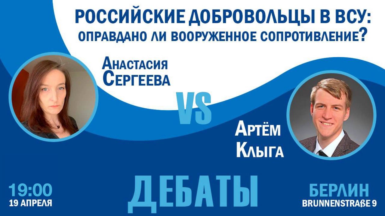 Берлинский Диалог приглашает на дебаты Анастасии Сергеевой и Артема Клыги.