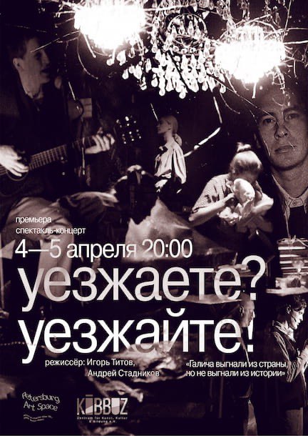 Спектакль-концерт «Прощание с Галичем» от театра «Мастерская Брусникина» и независимых продюсеров Марии Синицыной и Елены Каменской воссоздает последний вечер советского поэта Александра Галича перед тем, как он покинул Советский Союз.