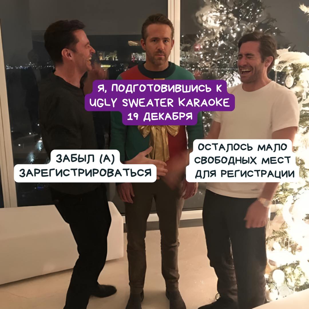 Караоке-вечер и конкурс на самый уродливый рождественский свитер с подарками!