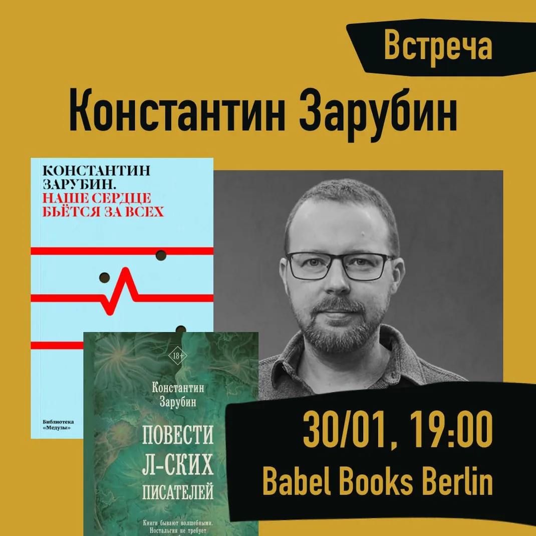 Встреча с Константином Зарубиным, написавшим книги «Повести л-ских писателей» (2023) и «Наше сердце бьётся за всех» (издательство «Медузы», 2024). Константин много лет живёт в Швеции, преподаёт языкознание и занимается философией. Он не только замечательный писатель, но и невероятно интересный собеседник. Поговорить вы сможете обо всём, что интересно: от опыта миграции и русскоязычной культуры, не привязанной к РФ, до искусственного интеллекта и будущего человечества.