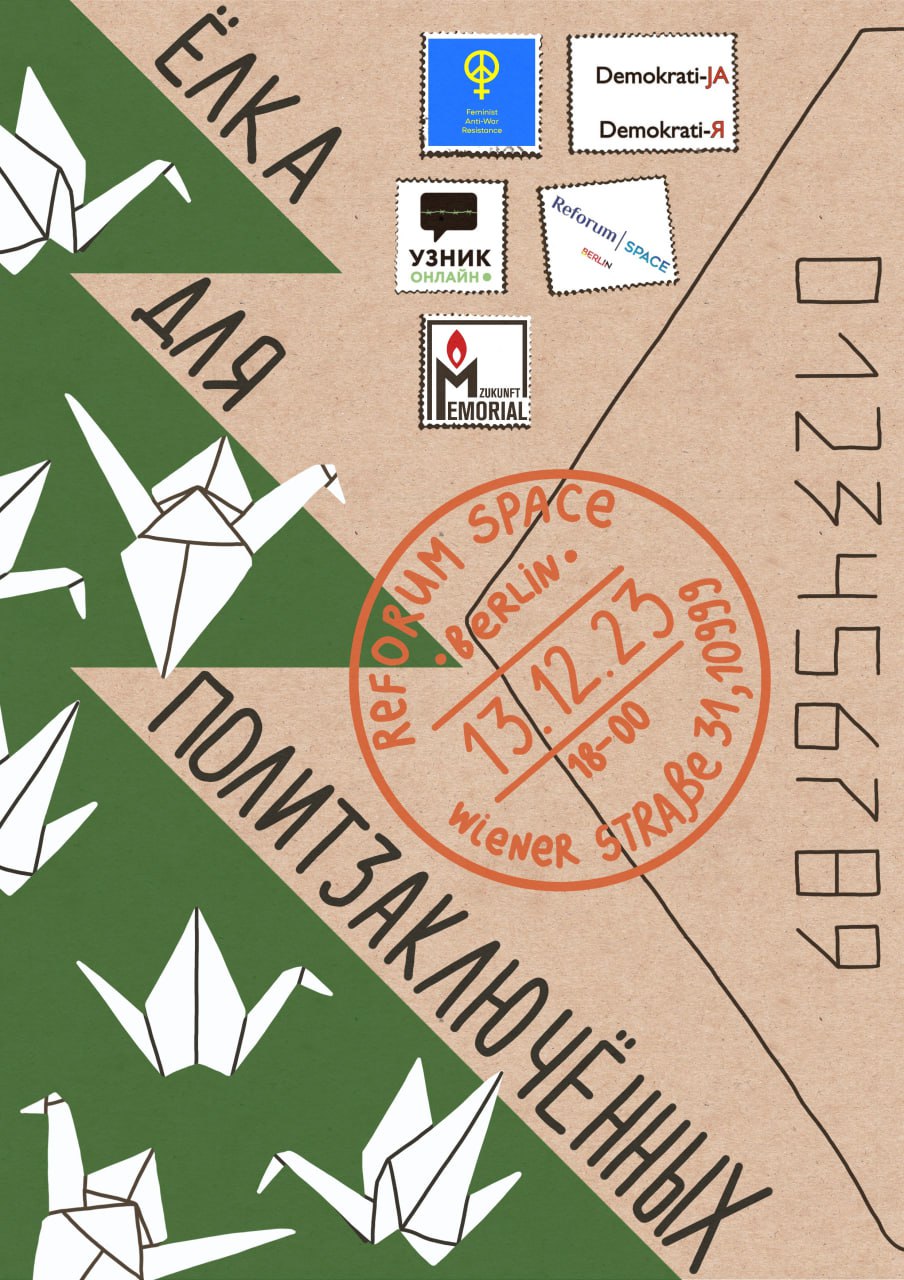 13 декабря в 18:00 приглашаем нарядить с нами ёлку в поддержку политзаключенных. Мы сделаем стаю журавликов-оригами, которые усядутся на ветвях ёлки в Reforum Space Berlin, а в Россию полетят наши новогодние открытки и заготовки для оригами, которые политзаключенные смогут собрать сами.