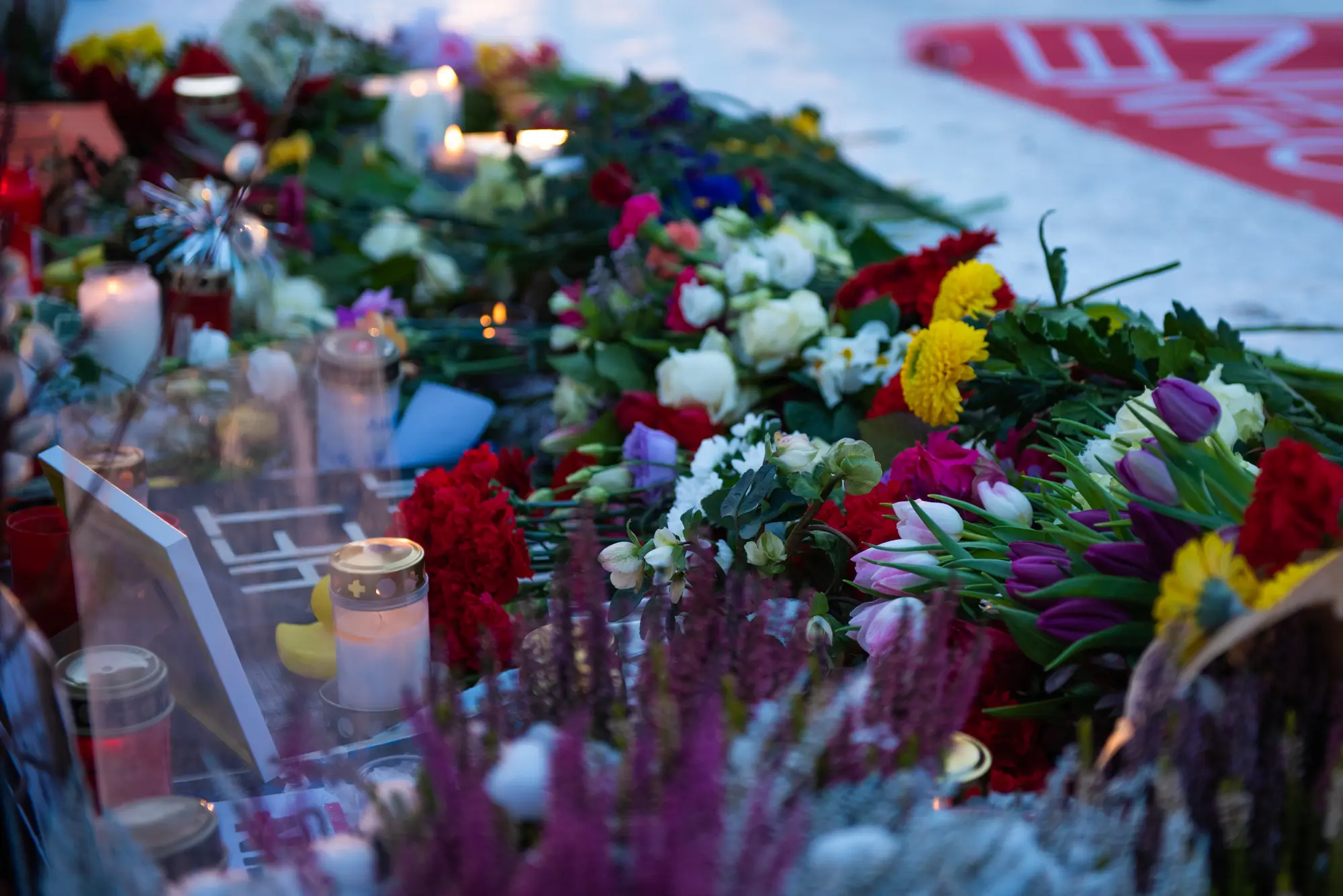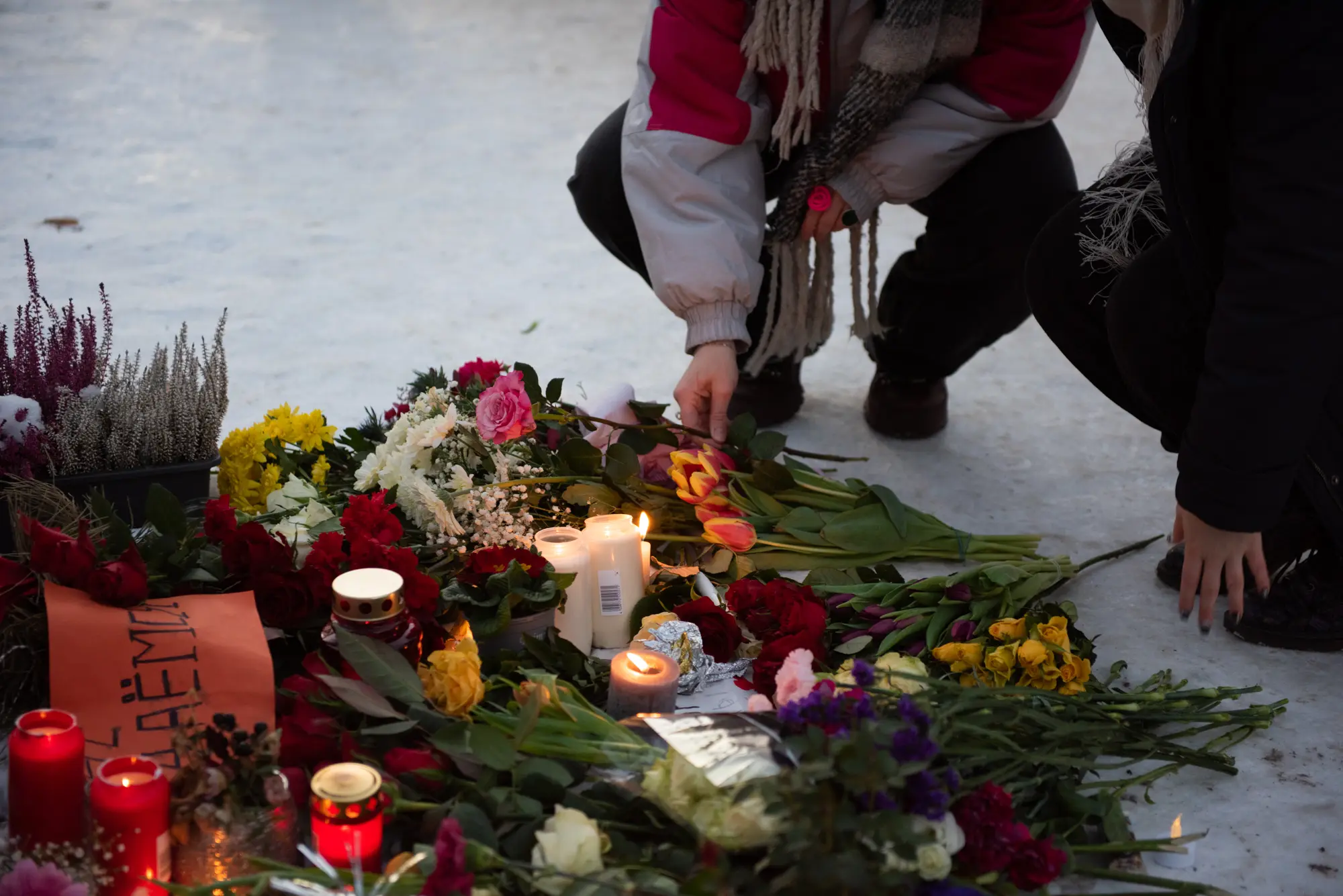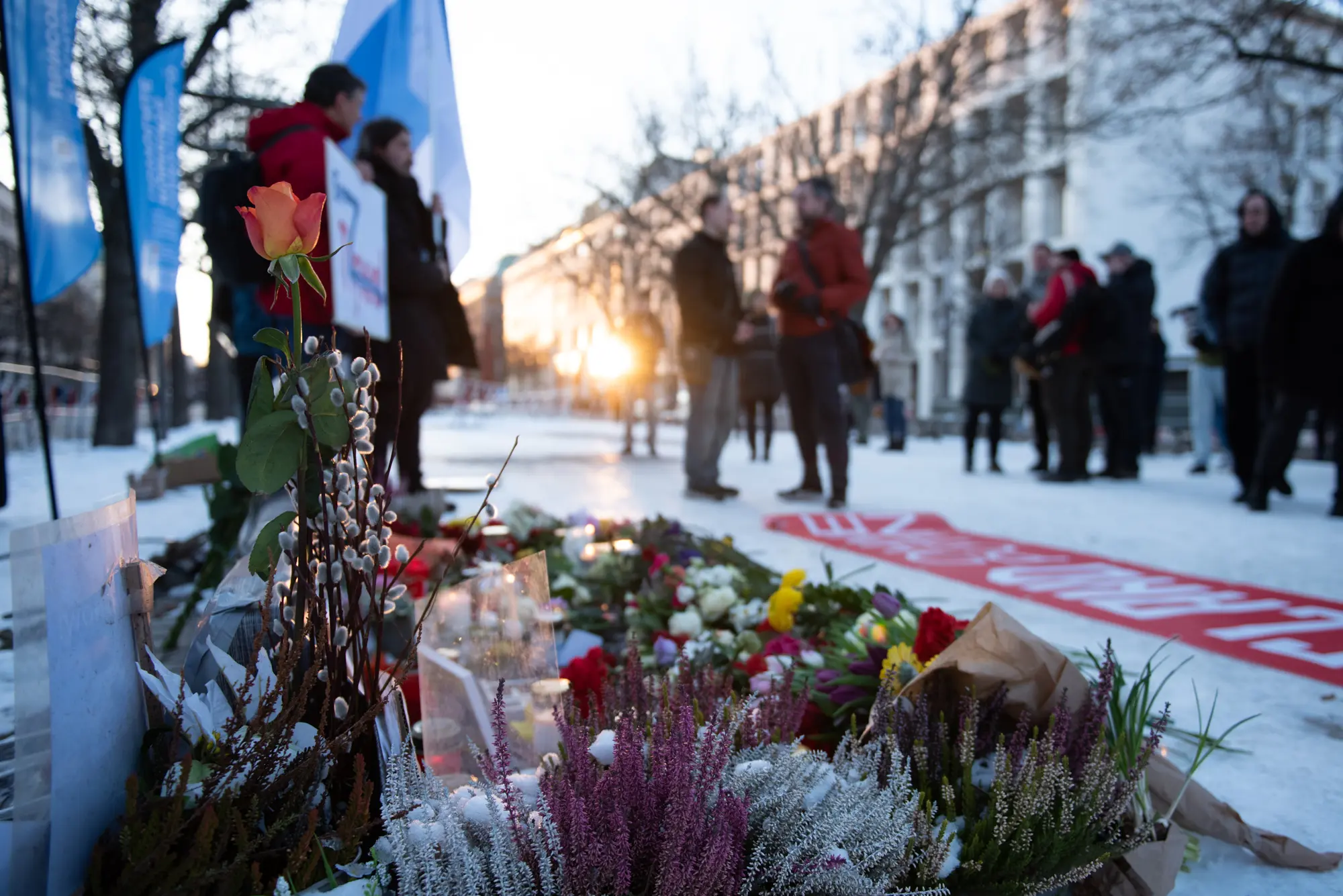 В течение всего дня люди несли цветы и свечи к мемориалу напротив посольства России. Там же прошла и акция памяти.